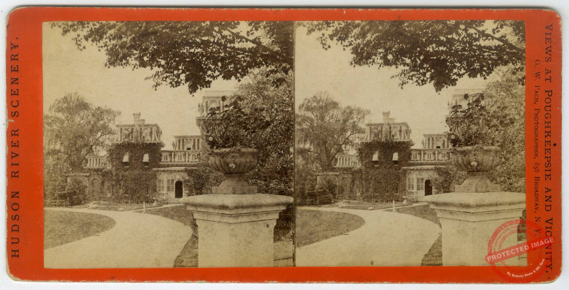 Harvey Eastman’s Mansion, in Eastman Park, a classic, timeless beauty of Second Empire French Mansard historic architecture in Poughkeepsie. The view is looking south from Little Market Street with Montgomery Street ahead.