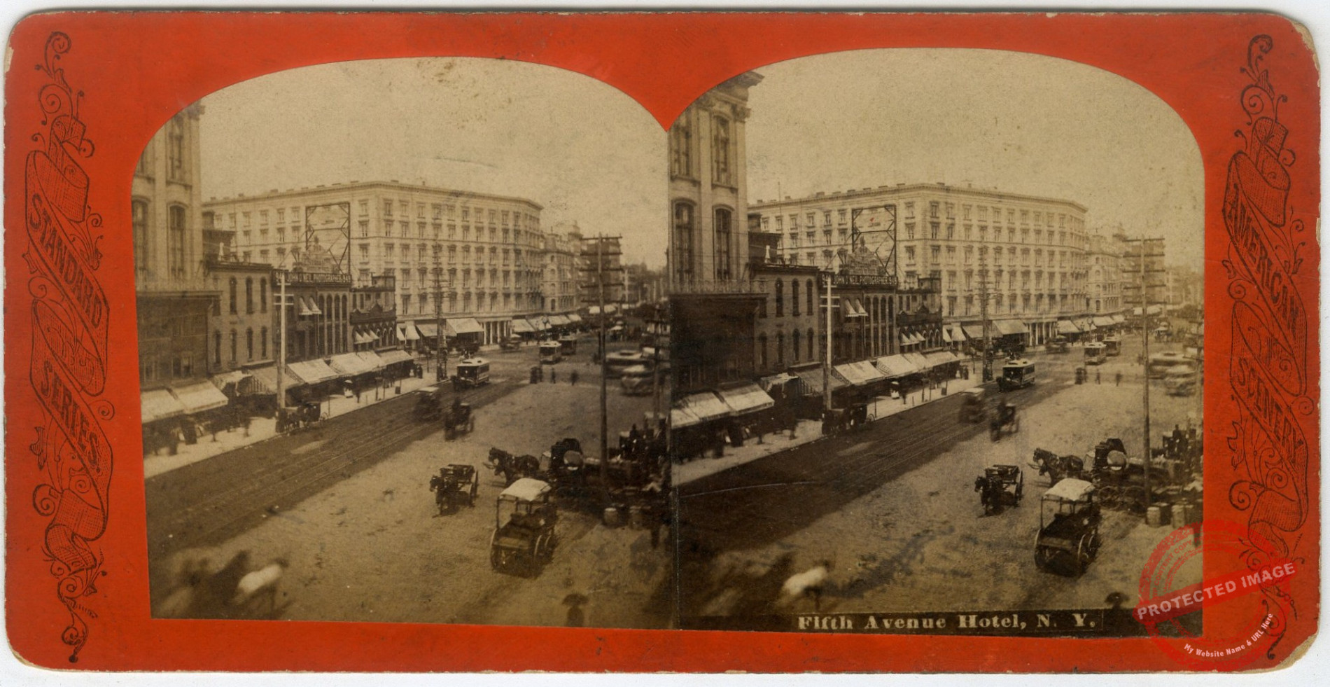 Fifth Avenue Hotel, NY. The sign for the Photograph Gallery of John O’Neil at 949 Broadway can be seen at left.